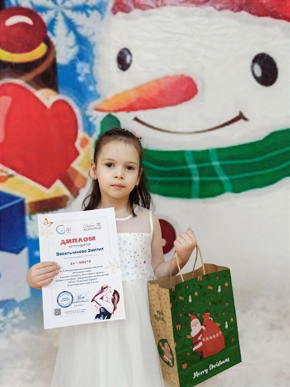 Старый год завершен, а результаты конкурса, в котором приняла участие наша маленькая художница мы получили в новом году. Мы поздравляем воспитанницу группы №23 137-3 Васильчикову Эмилию, с победой во II Международном конкурсе рисунков «Моя милая мама», проведённом в рамках социально-культурного проекта «Добрые конкурсы», приуроченного ко Дню матери. Творческая работа Эмилии была высоко оценена жюри за искренность, художественную выразительность и тёплое отношение к теме материнства. Спасибо за талант, старание и эмоции, которыми она поделились с нами и зрителями конкурса! Эмилия награждена дипломом за 1 место и памятным подарком.