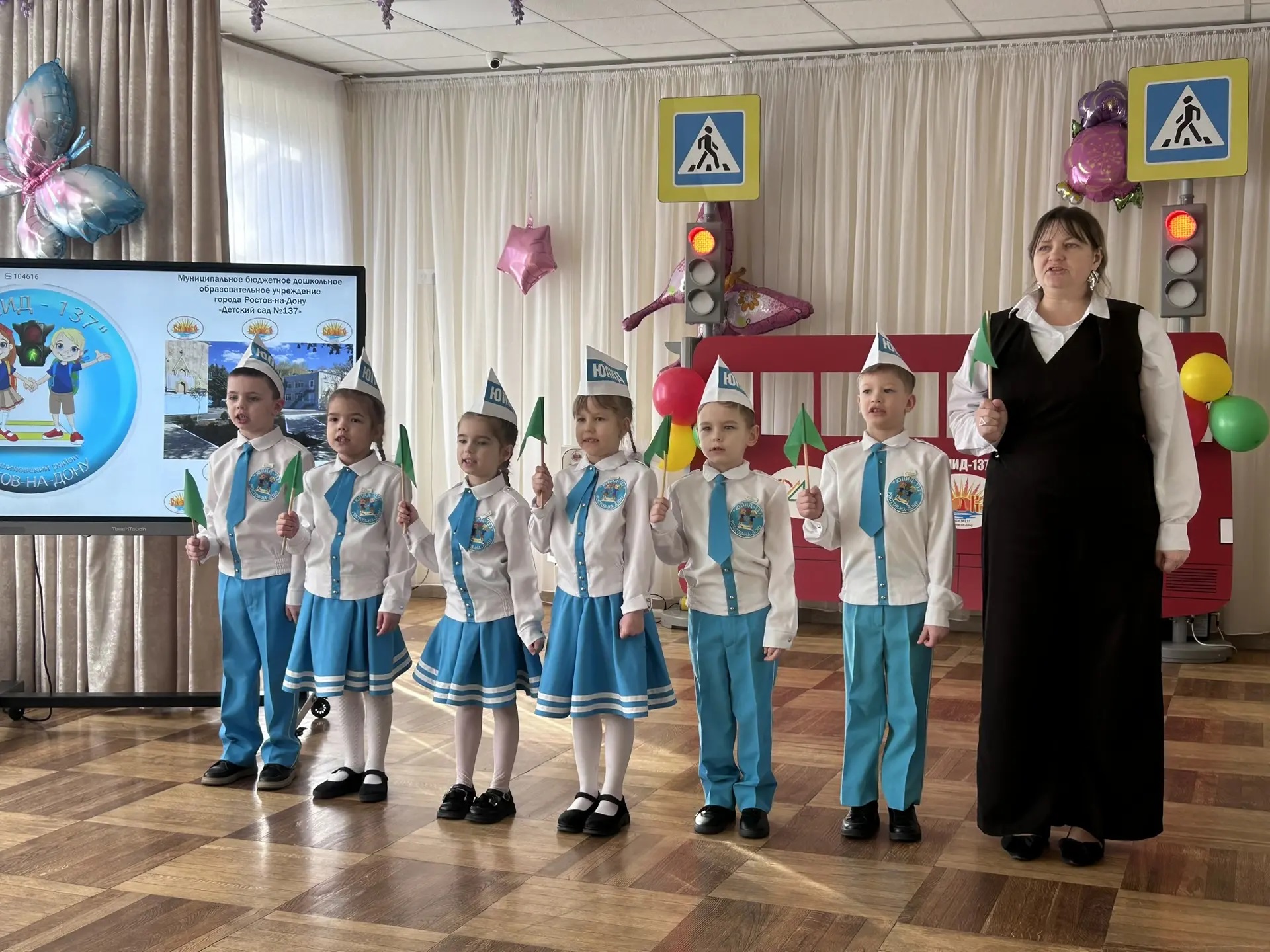 13 марта на базе Центра безопасности дорожного движения МБДОУ № 137-1 Ворошиловского района г. Ростова-на-Дону состоялся районный этап регионального конкурса-фестиваля команд ЮПИД дошкольных образовательных организаций «Весёлый Светофор - 2026». ЮПИД-КОМАНДА-137 подготовила для всех участников события тематическую выставку «На Перекрёстке 2026-Весёлый Светофор». В составе конкурсного жюри Т.В. Латышева - педагог-организатор областной инновационной площадки «Точка роста ЮИДовцев Дона: Безопасность. Патриотизм. Интерактив.» Центра детского творчества Ворошиловского района города Ростова-на-Дону, куратор деятельности команд ЮПИД по поручению Министерства общего и профессионального образования Ростовской области, Н.В. Бабасинян - ведущий методист по дошкольной работе МКУ «Отдел образования Ворошиловского района города Ростова-на-Дону», руководители дошкольных учреждений и старшие воспитатели. Жюри предстояло оценить творческие работы педагогических коллективов в трех номинациях в соответствии с положением: социально-значимая акция «Шагающий автобус», литературно-музыкальная композиция «В едином строю с ГосАвтоинспекцией 11 лет» и тематический танец «Регулировщицы». Итоги подведены, намечены точки роста и развития. Впереди у команд-победителей МБДОУ № 137 и 314 новый этап – региональный. Пожелаем им удачи! Вместе по дороге безопасности к новым победам!